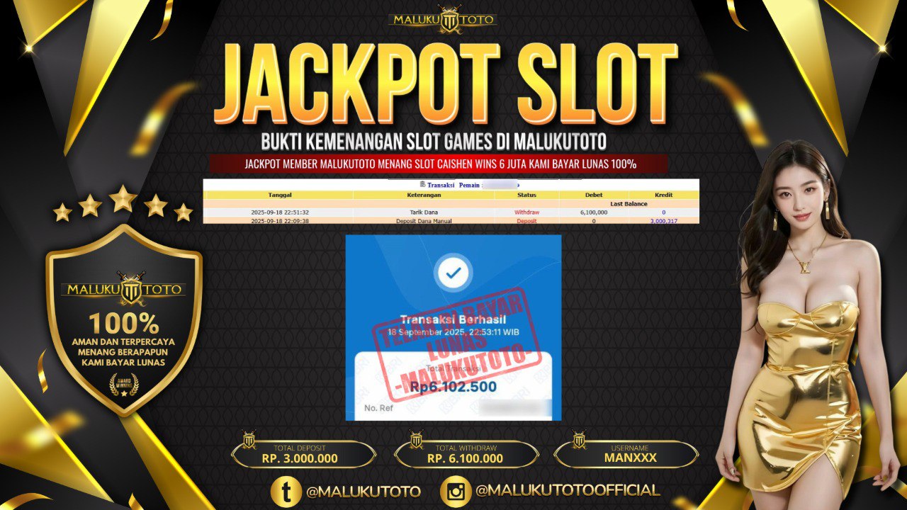 Selamat kepada User id : MAN*** Telah berhasil mendapatkan kemenangan besar pada permainan CAISHEN WINS kemenangan Sebesar Rp.6.100.000, Setelah mengisi formulir withdraw dengan kurung waktu hanya 3 – 5 menit pihak malukutoto sudah melakukan transfer kepada pemilik Userid dan dana sudah dapat di cairkan oleh pemenang. Bukti pembayaran yang kami berikan merupakan bukti pembayaran yang SAH / VALID yang langung di dapatkan melaui tanda transfer transaksi dari Bank yang di tuju.