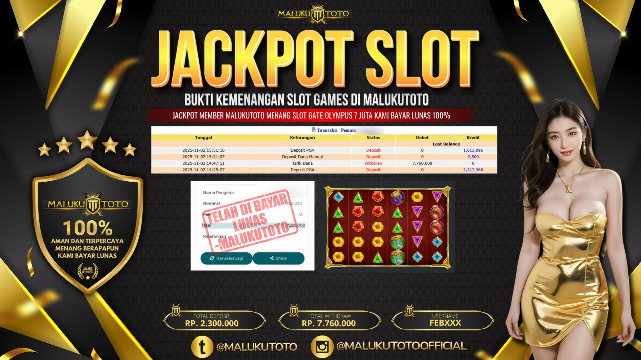 Masih ragu dengan Malukutoto bos ? Di mana bandar Slot online sekarang yang terpercaya seperti Malukutoto? Bandar yang mengirimkan kemenangan member tanpa bertele – tele. Jadi…. tidak perlu khwatir pada situs malukutoto karena kemenangan anda berapapun akan dibayarakan hingga lunas kepada pemenang.