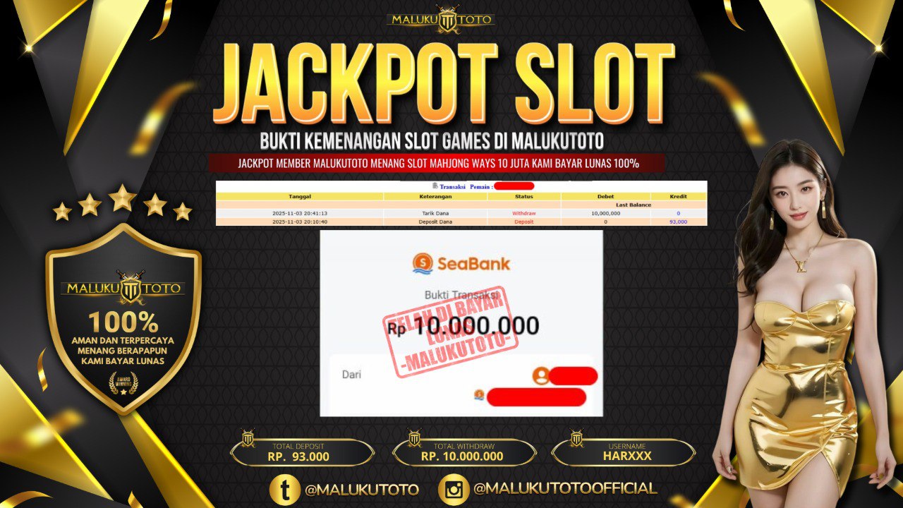 Bandar togel MALUKUTOTO merupakan bandar togel dan slot online yang membayar semua kemenangan member hingga lunas. Setiap pembayaran pada situs kami dilakukan dengan cara transfer ke rekening tujuan yang sudah di daftarkan pada situs togel online kami, Pembayaran hanya dapat di proses jika rekening yang di daftarkan telah valid dan dapat di transfer. Semua kemenangan member yang mendapatkan hadiah jackpot terbesar akan kami posting agar semua pemain dapat melihat bandar situs terpercaya MALUKUTOTO ini membayar semua kemenangan member hingga lunas. Setiap postingan yang kami posting akan kami lakukan sensor pada nomor rekening 4 digit dan nama rekening untuk menjaga privasi dan kerahasiaan member. Postingan Jackpot yang kami posting agar member atau pemain yang belum pernah bermain bisa melihat bandar togel Bukan Kaleng Kaleng Seperti MALUKUTOTO ini, Semua postingan jackpot yang kami posting dapat di lihat data keasliannya melalui nomor reff yang di tunjukan pada bank atau mbanking saat kita melakukan transfer.