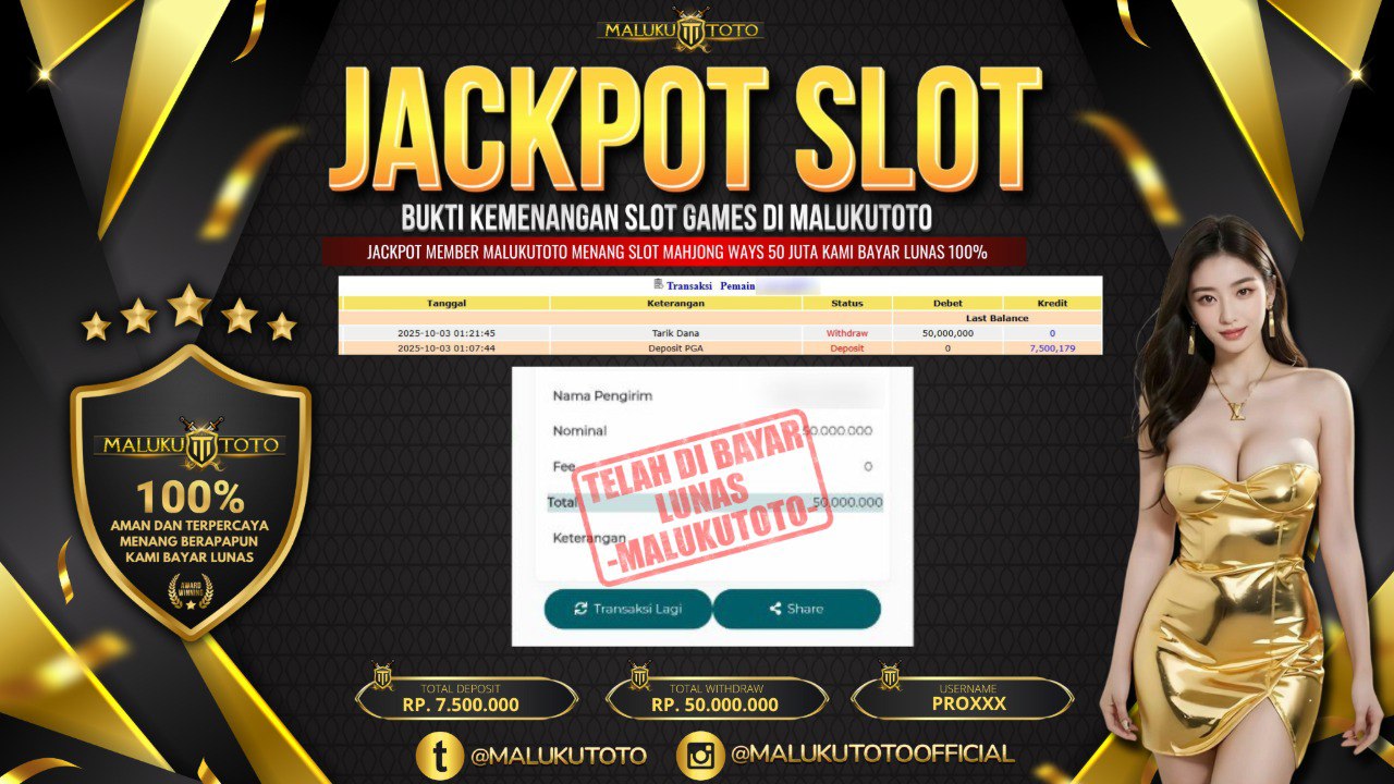 Selamat kepada User id : PRO*** Telah berhasil mendapatkan kemenangan besar pada permainan SLOT MAJONG WAYS kemenangan Sebesar Rp.50,000,000, Setelah mengisi formulir withdraw dengan kurung waktu hanya 3 – 5 menit pihak malukutoto sudah melakukan transfer kepada pemilik Userid dan dana sudah dapat di cairkan oleh pemenang. Bukti pembayaran yang kami berikan merupakan bukti pembayaran yang SAH / VALID yang langung di dapatkan melaui tanda transfer transaksi dari Bank yang di tuju.
