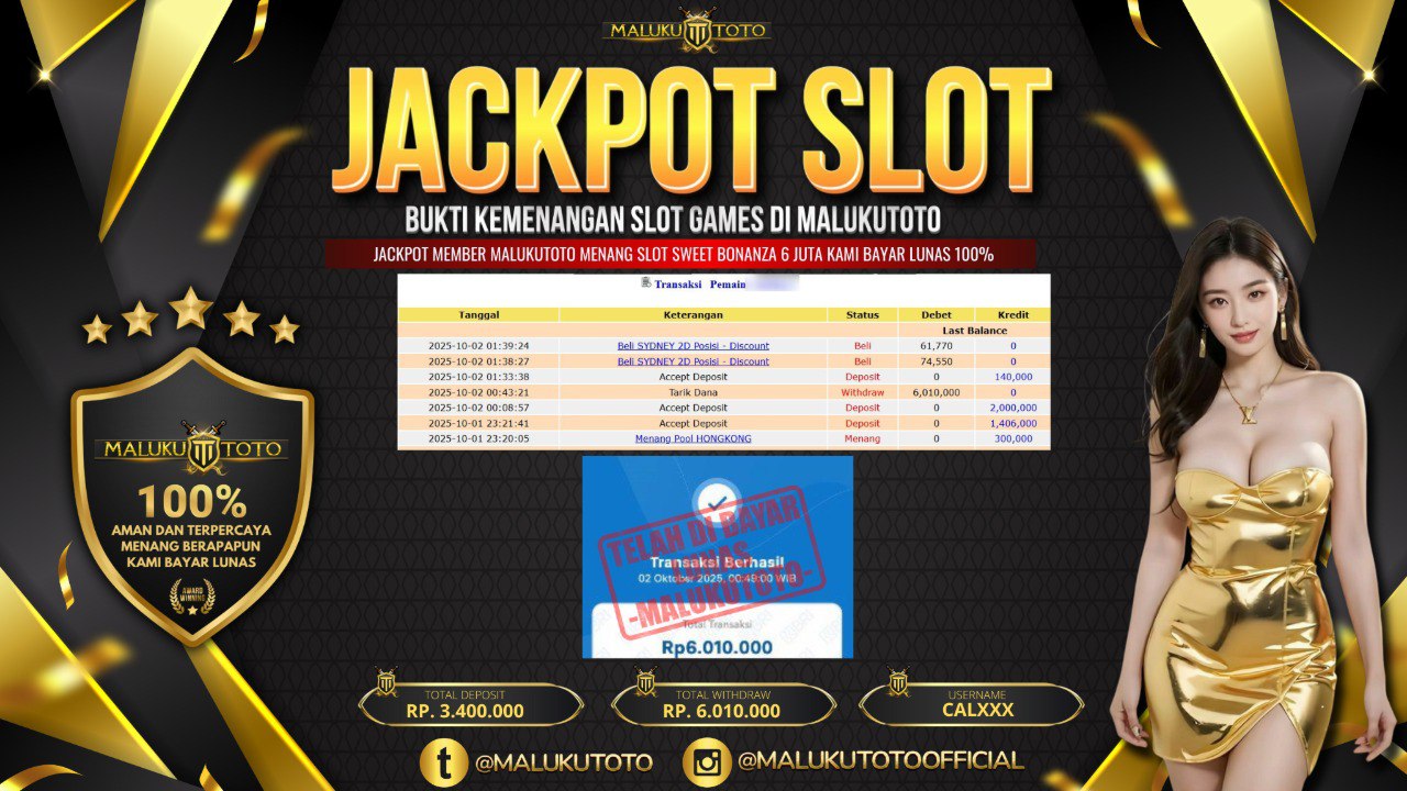 Selamat kepada User id : CAL*** Telah berhasil mendapatkan kemenangan besar pada permainan SLOT SWEET BONANZA kemenangan Sebesar Rp.6,000,000, Setelah mengisi formulir withdraw dengan kurung waktu hanya 3 – 5 menit pihak malukutoto sudah melakukan transfer kepada pemilik Userid dan dana sudah dapat di cairkan oleh pemenang. Bukti pembayaran yang kami berikan merupakan bukti pembayaran yang SAH / VALID yang langung di dapatkan melaui tanda transfer transaksi dari Bank yang di tuju.