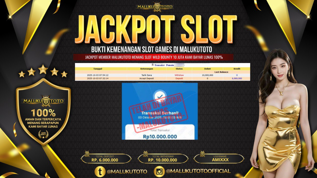 Bandar togel MALUKUTOTO merupakan bandar togel dan slot online yang membayar semua kemenangan member hingga lunas. Setiap pembayaran pada situs kami dilakukan dengan cara transfer ke rekening tujuan yang sudah di daftarkan pada situs togel online kami, Pembayaran hanya dapat di proses jika rekening yang di daftarkan telah valid dan dapat di transfer. Semua kemenangan member yang mendapatkan hadiah jackpot terbesar akan kami posting agar semua pemain dapat melihat bandar situs terpercaya MALUKUTOTO ini membayar semua kemenangan member hingga lunas. Setiap postingan yang kami posting akan kami lakukan sensor pada nomor rekening 4 digit dan nama rekening untuk menjaga privasi dan kerahasiaan member. Postingan Jackpot yang kami posting agar member atau pemain yang belum pernah bermain bisa melihat bandar togel Bukan Kaleng Kaleng Seperti MALUKUTOTO ini, Semua postingan jackpot yang kami posting dapat di lihat data keasliannya melalui nomor reff yang di tunjukan pada bank atau mbanking saat kita melakukan transfer.